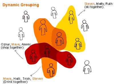 People tend to gather in groups that reflect mutual activities and interests