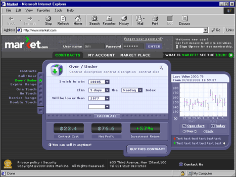 IWeb application for real time financial betting Creative director Max. Interactive ltd Client: Market.com Year:2001 |